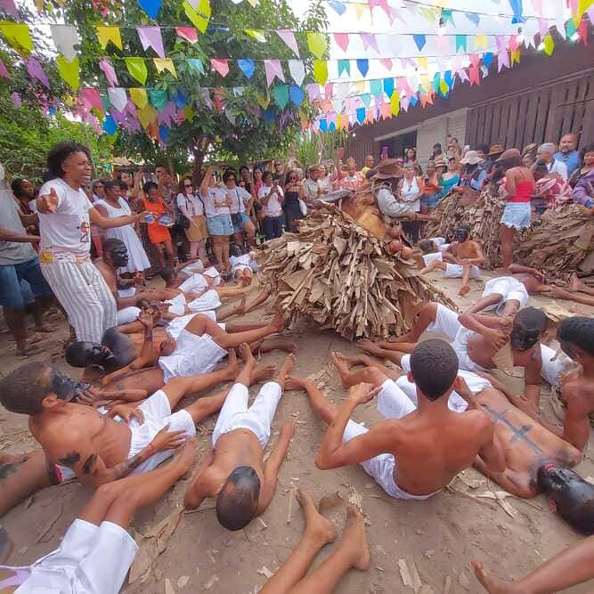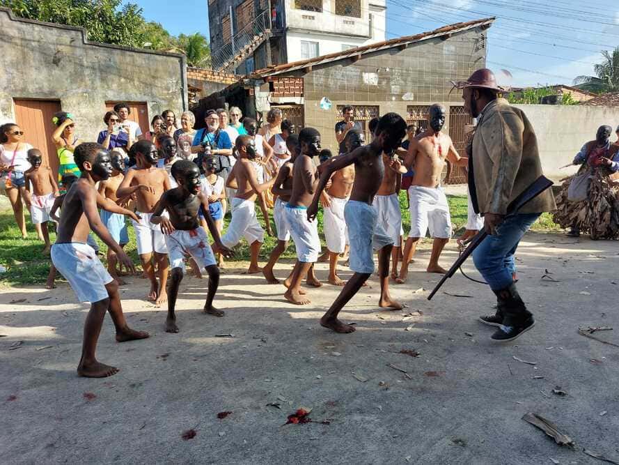 Esta encenação de reparação história realizada pelo Nego Fugido coloca os negros como protagonistas da conquista da abolição da escravatura. A manifestação popular, nascida na comunidade quilombola baiana de Acupe, narra em aparições a saga de pessoas escravizadas que, em batalha, subjugam o rei de Portugal e exigem do monarca a carta de alforria. As encenações acontecem anualemnte na rua, no mês de julho, em meio a uma série de expressões culturais quilombolas, como o samba de roda, a capoeira e as aparições de Caretas, Mandus e Bombachos, elementos simbólicos fundamentais na identificação de um passado marcado pelo processo de escravidão de populações africanas.