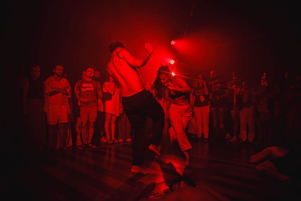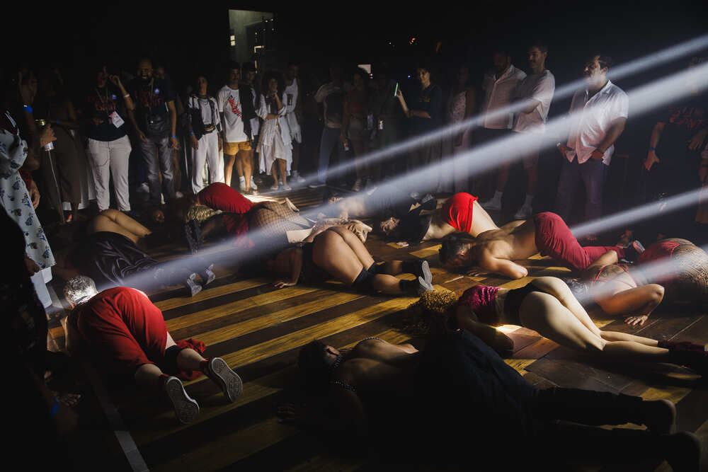 “O começo da festa me comoveu: as contorções, a dança coletiva, os chamados para a celebração, as sonoridades todas, e, sobretudo, a força erótica escorrendo sobre nós, nos lembrando que hoje é hoje e estamos bem vivos.”